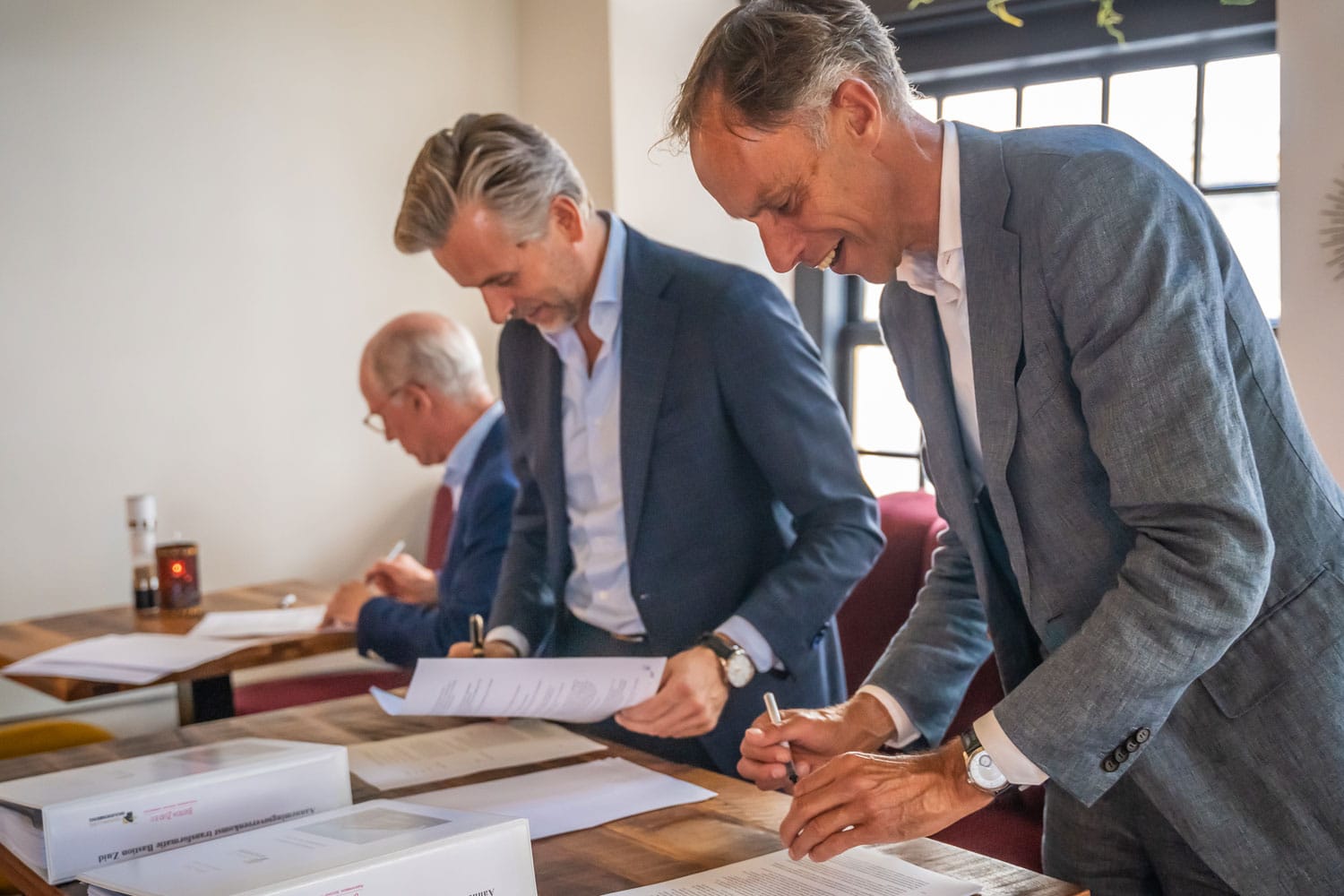 Op woensdag 30 augustus hebben André Köster (Koninklijke Woudenberg) en Vincent Hofs en Marcel van Rensch (Renschdael Groep) de aannemingsovereenkomst getekend voor de realisatie van het high end kantoorgebouw ‘Bastion-Zuid te ’s-Hertogenbosch.