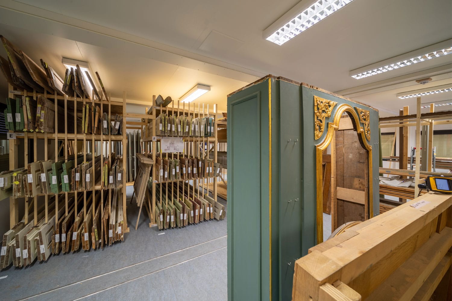 De grote uitdaging was hoe we alle monumentale onderdelen netjes en zonder schade uit het paleis kregen; we hebben gezorgd dat ze niet kwijtraakten en hadden een plan hoe we alles terug gingen plaatsen. In totaal zijn er bijna 20.000 losse elementen uit het paleis gehaald om later te worden teruggeplaatst. Van een stukje plint van 15 cm tot een complete schouw met schelpvormige boezem. We hebben een nieuwe functie geïntroduceerd; een magazijnmeester die zich op de opslag van al die elementen heeft kunnen concentreren. Daarnaast hebben we een digitaal systeem met scanner en codes bedacht, zodat alle elementen op de juiste manier bewaard én teruggevonden kunnen worden.